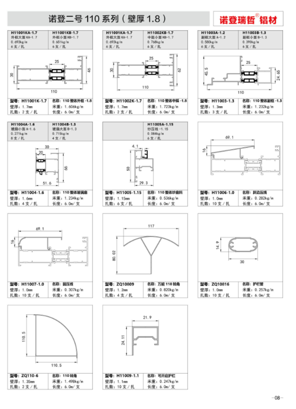 110系列诺登二号(壁厚1.8)窗料