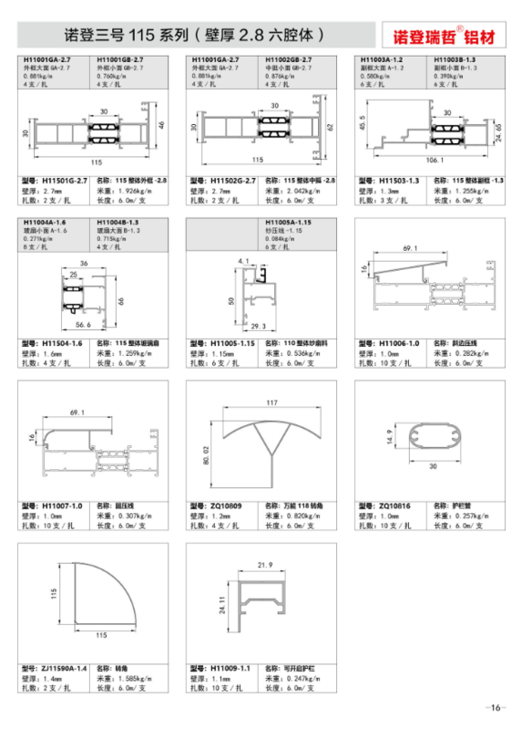 115系列诺登三号(壁厚2.8六腔体)窗料